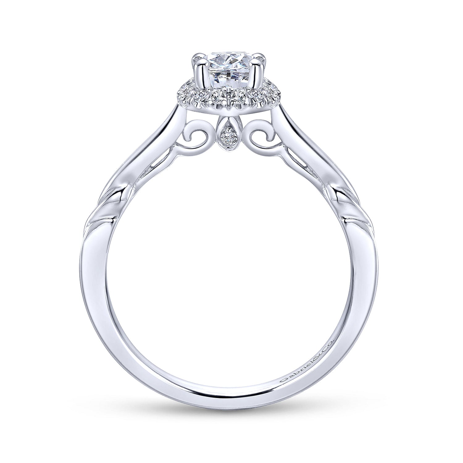 White Gold Round Diamond Halo Split Shank Complete Engagement Ring