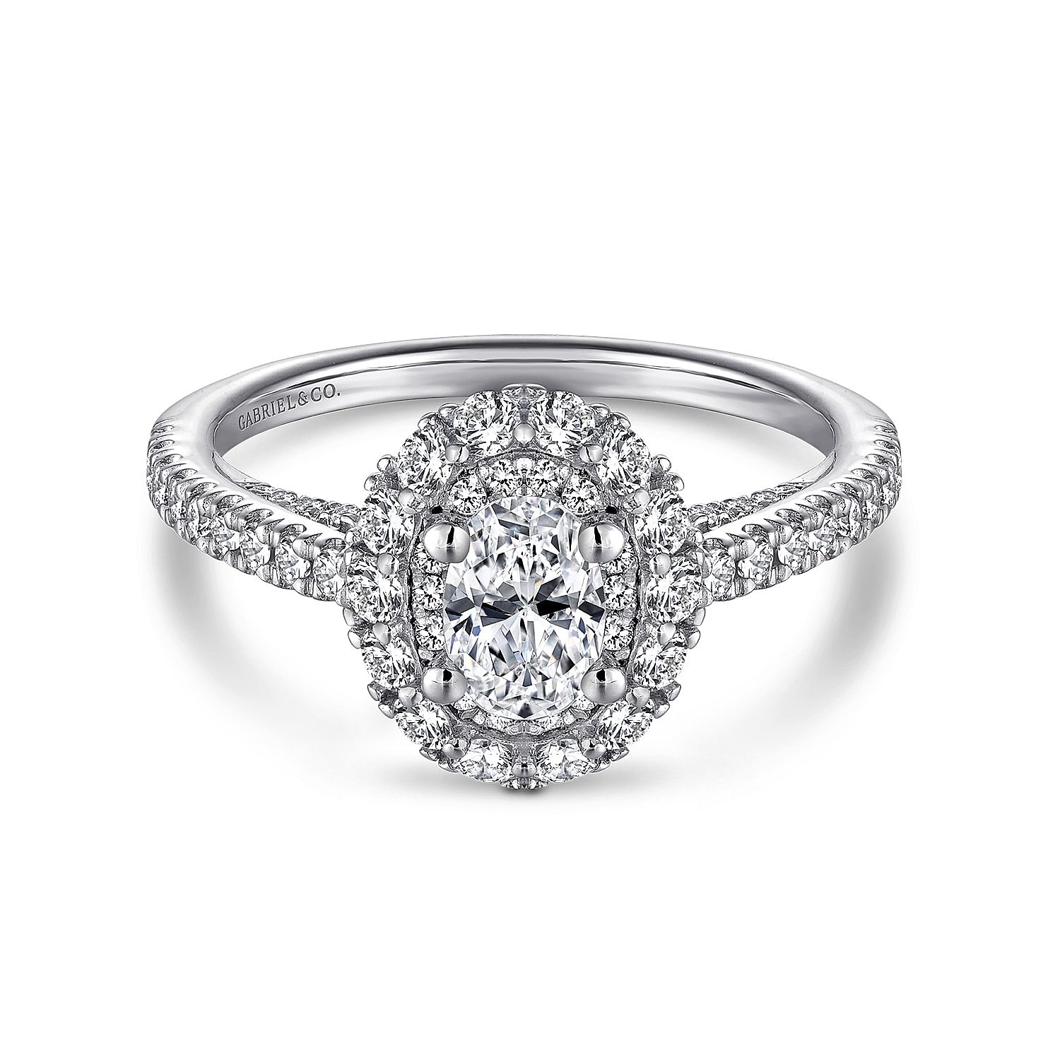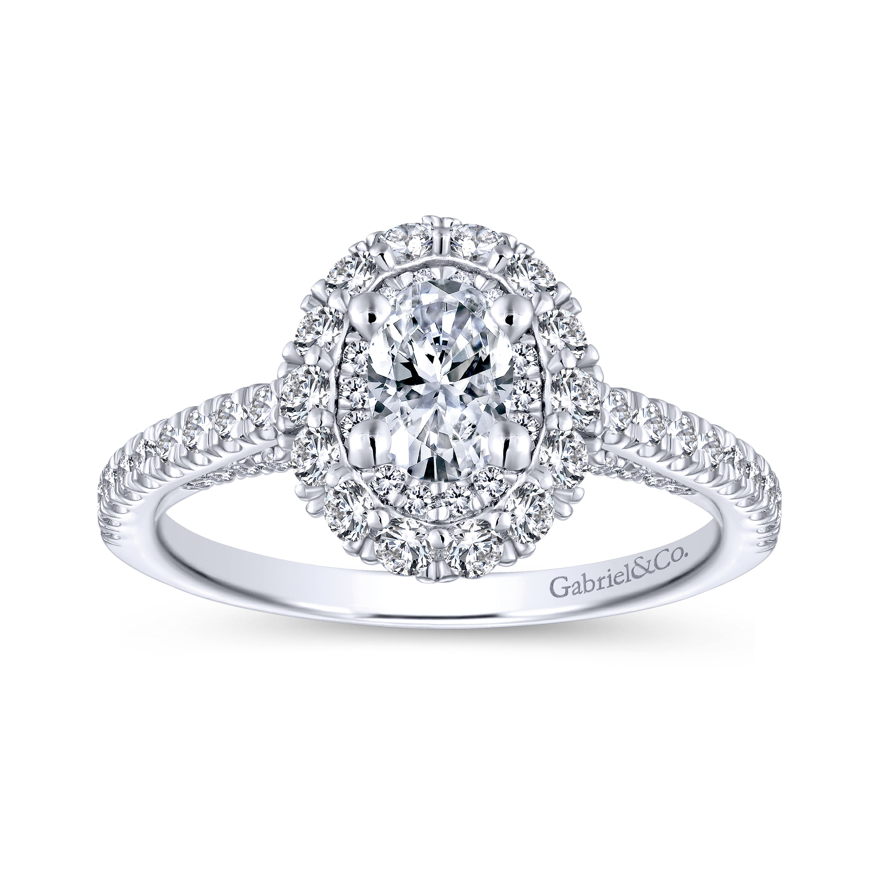 White Gold Oval Double Halo and Pave Complete Diamond Engagement Ring