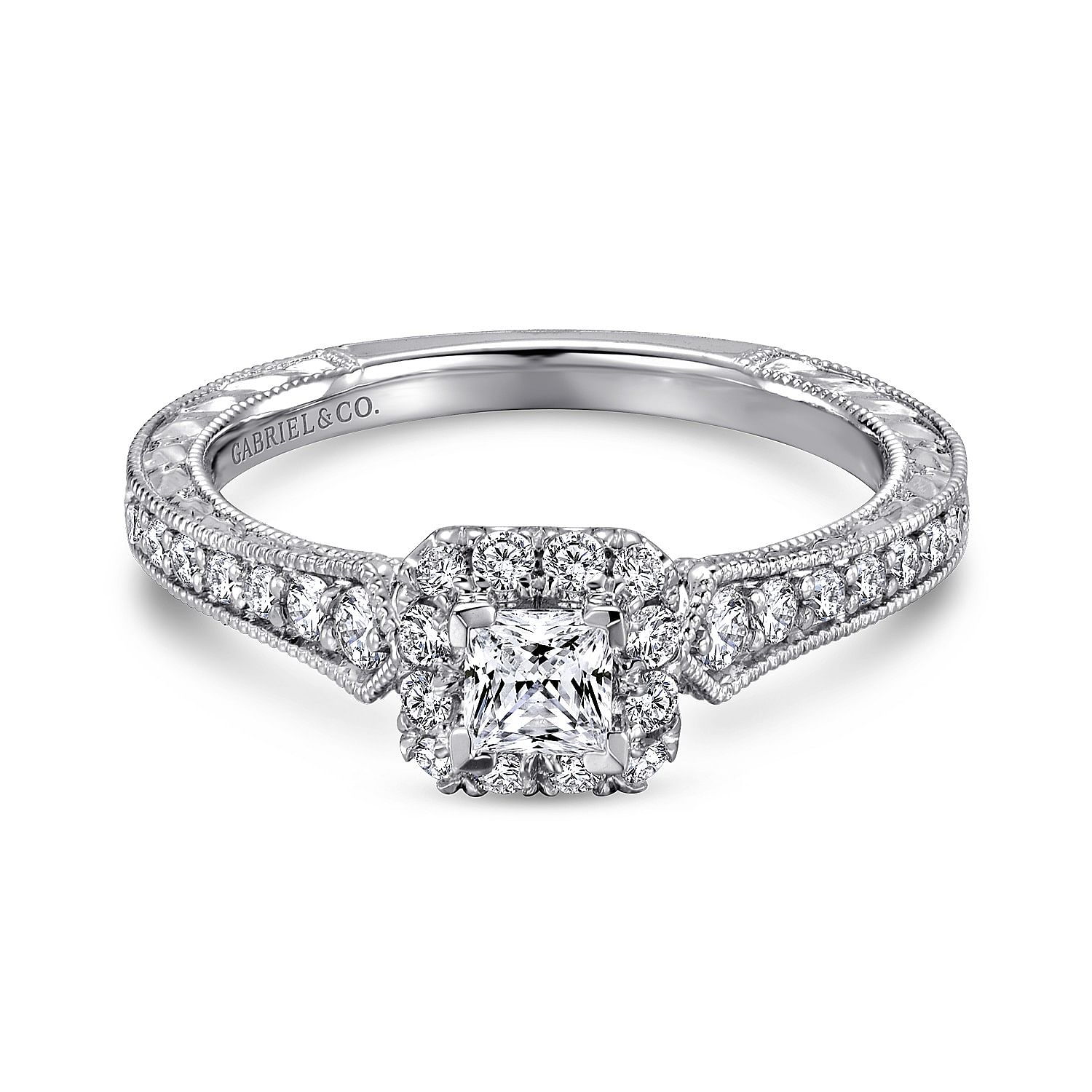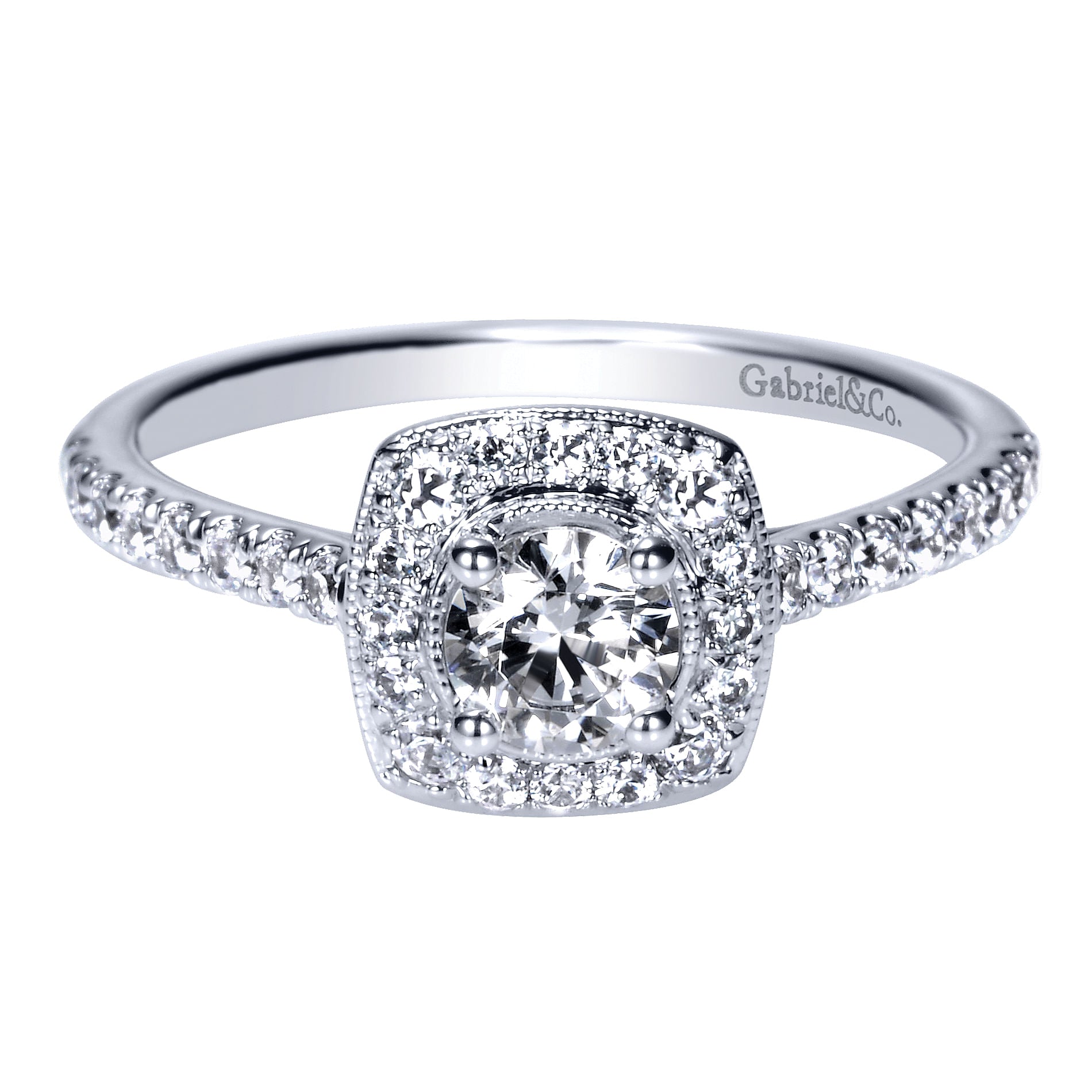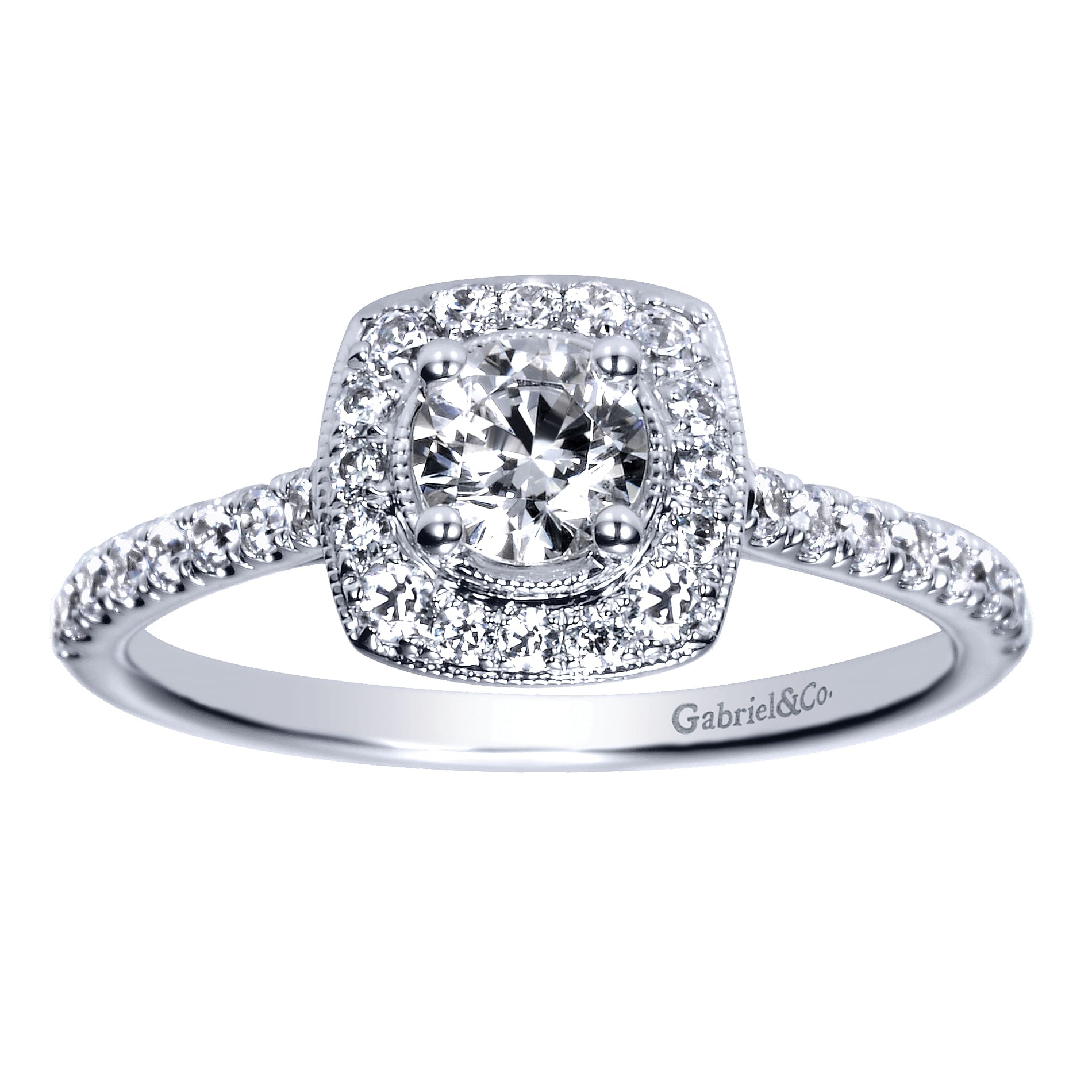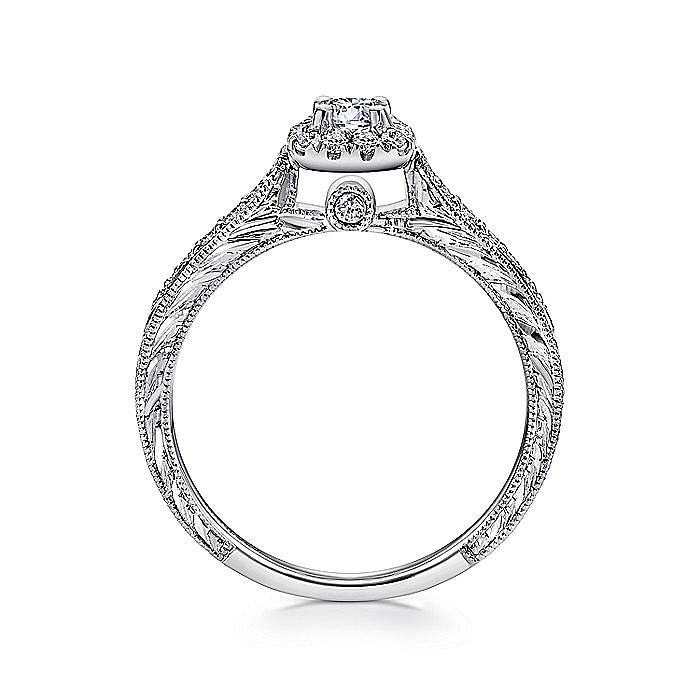 White Gold Vintage Inspired Cushion Halo Round Complete Diamond Engagement Ring