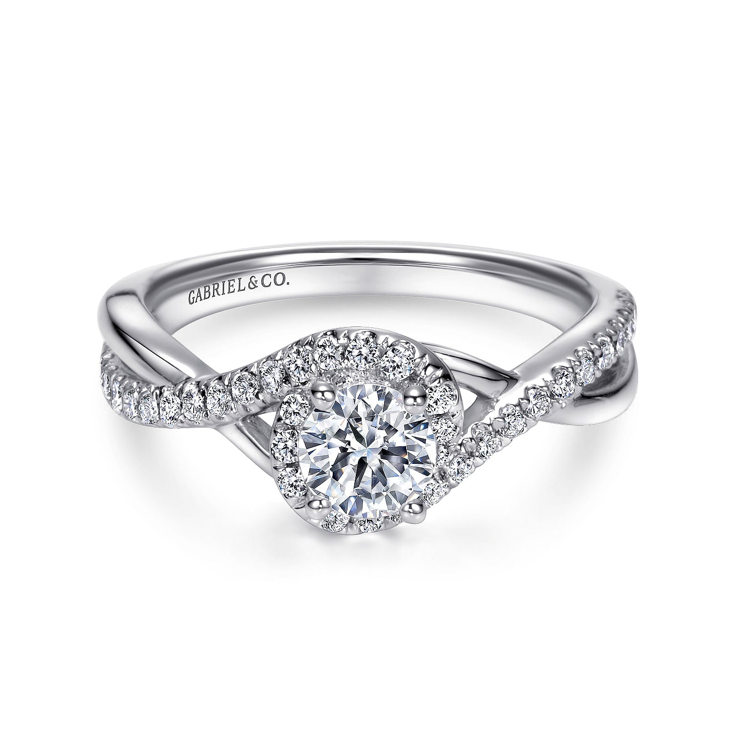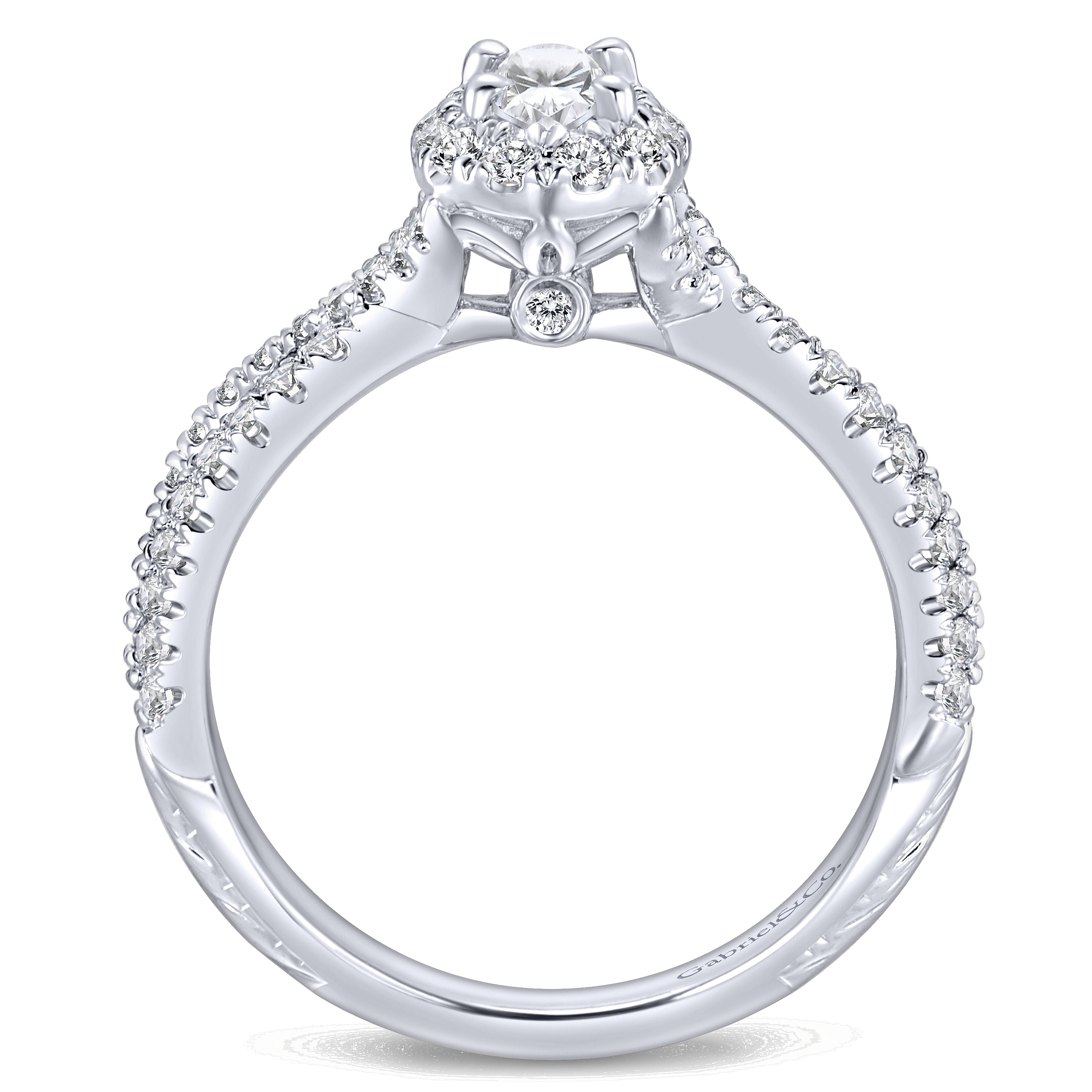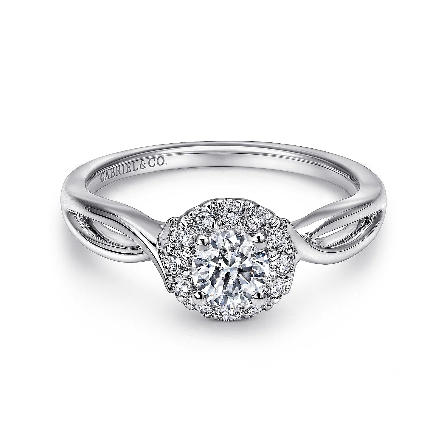White Gold Round Diamond Halo Split Shank Complete Engagement Ring
