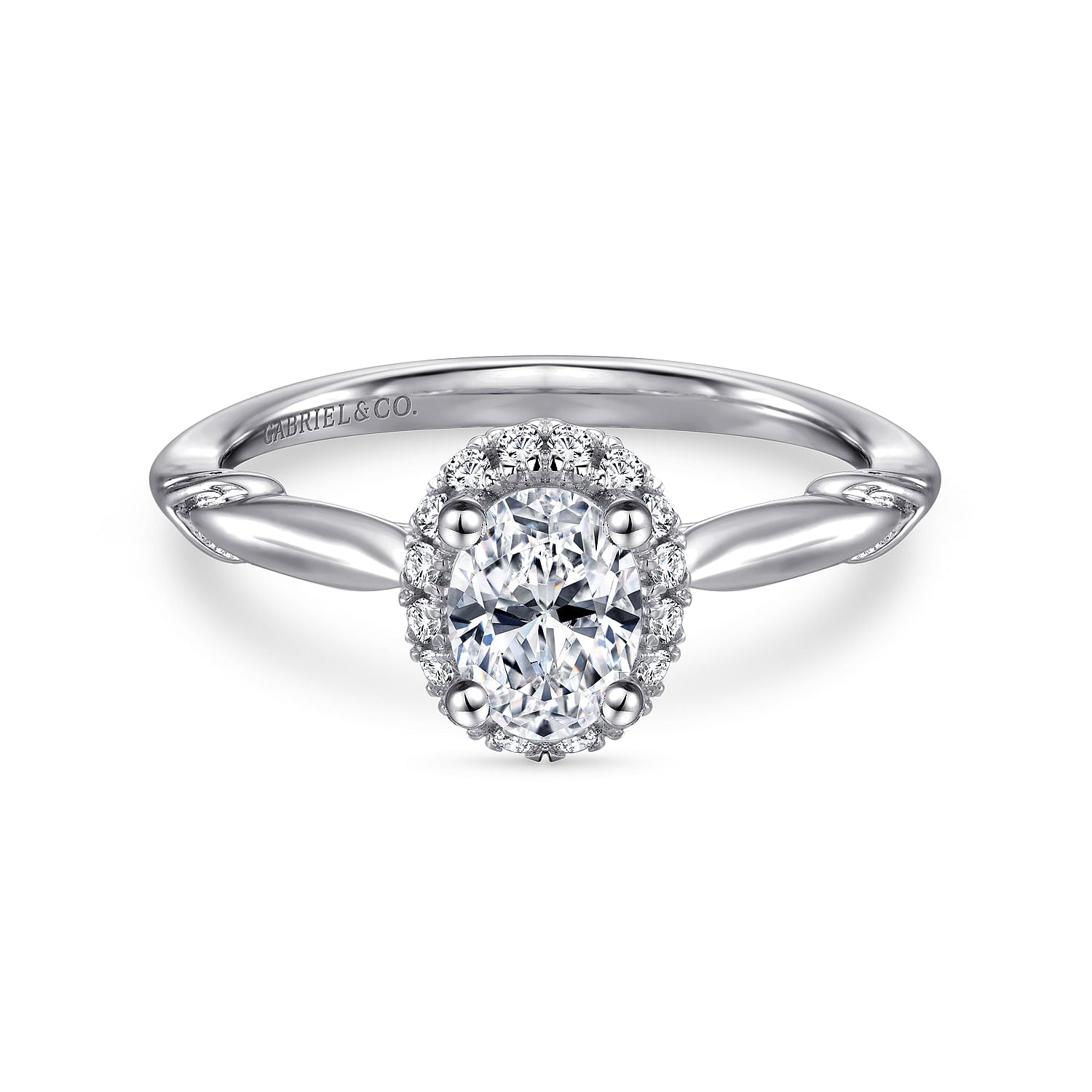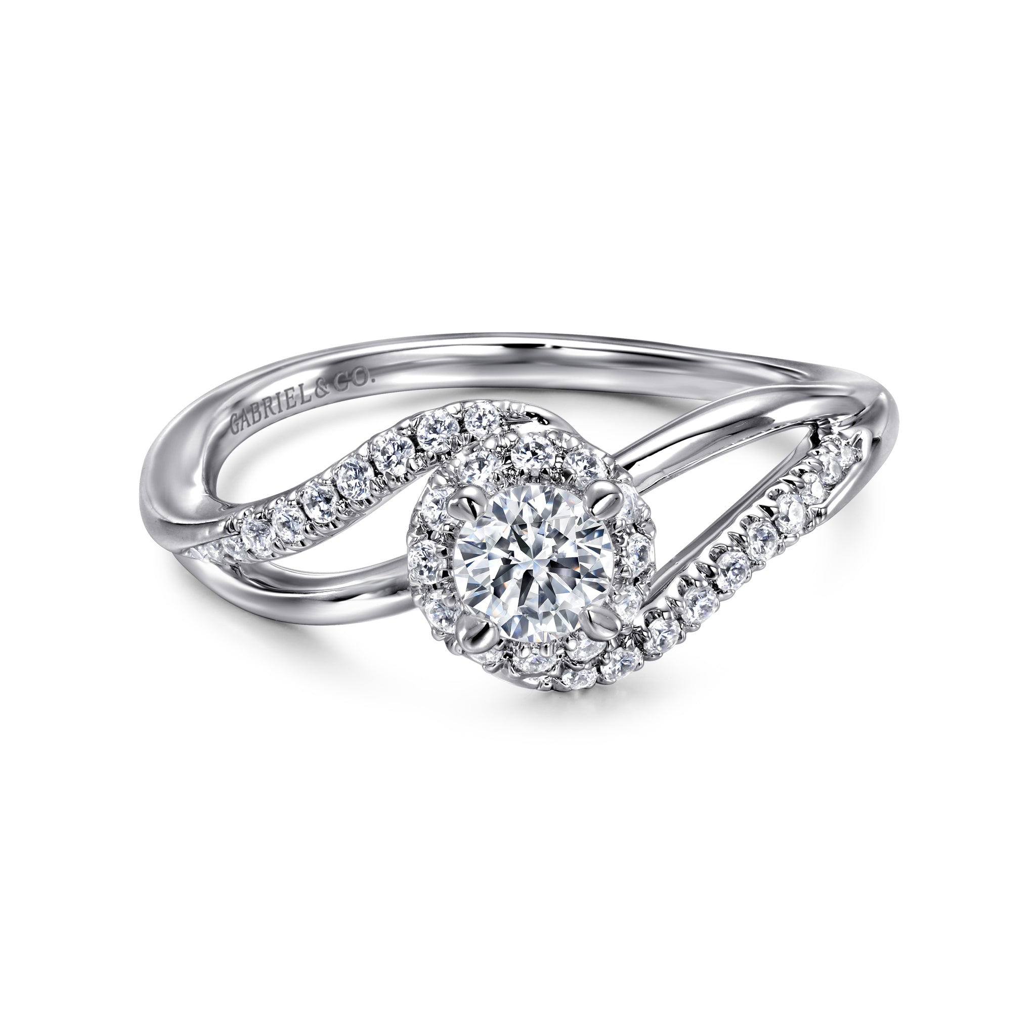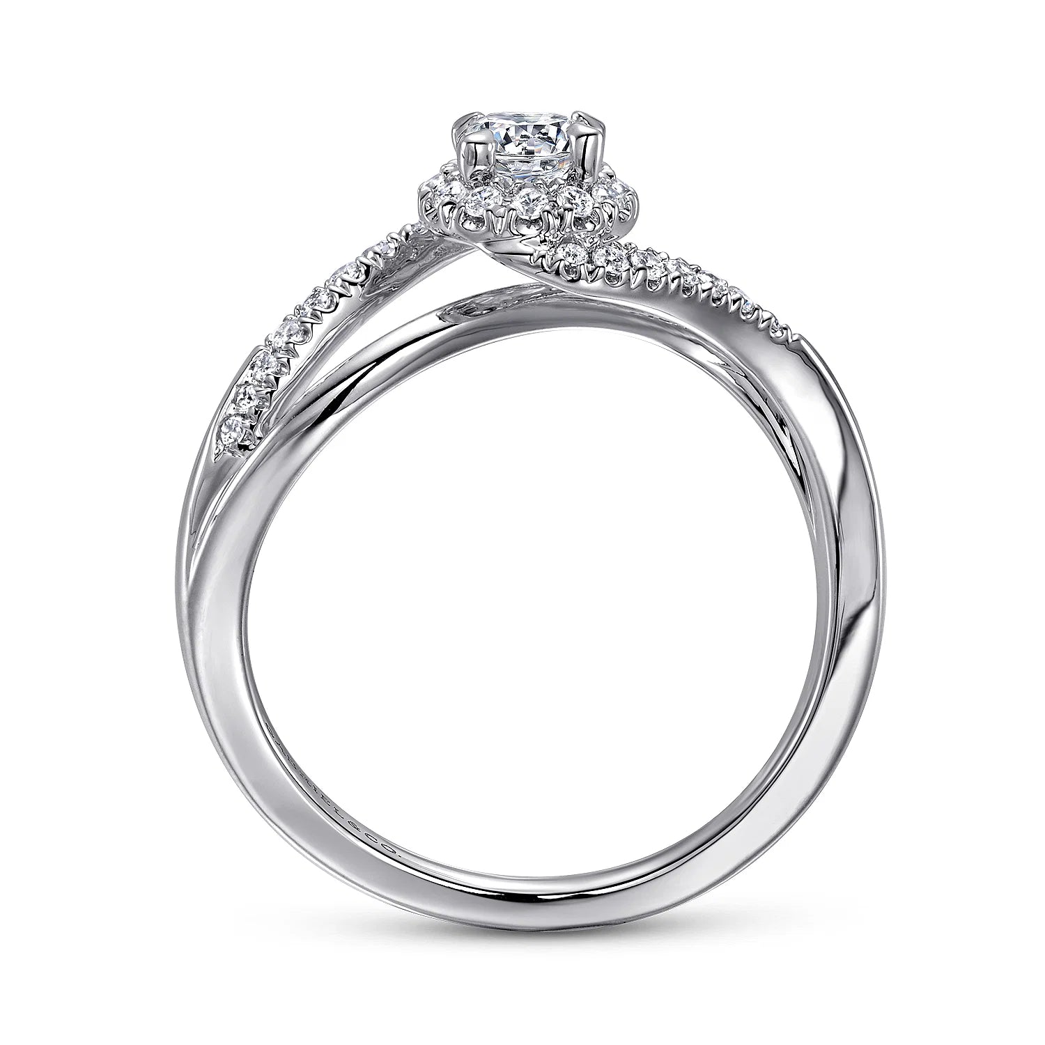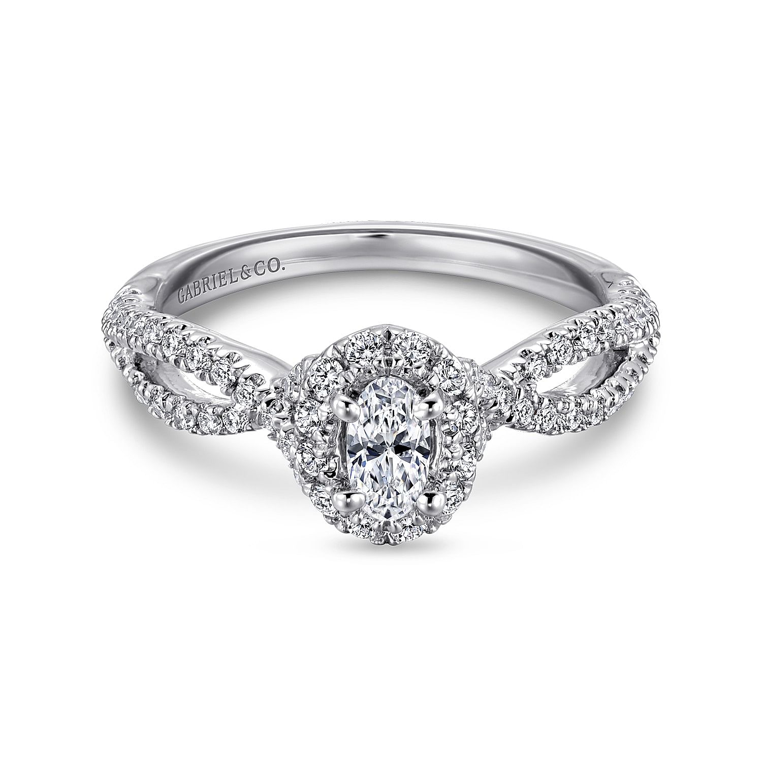 White Gold Round Diamond Halo Split Shank Complete Engagement Ring