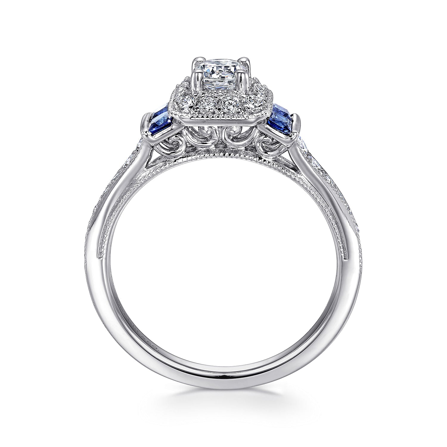 White Gold Round Halo Sapphire and Diamond Complete Engagement Ring