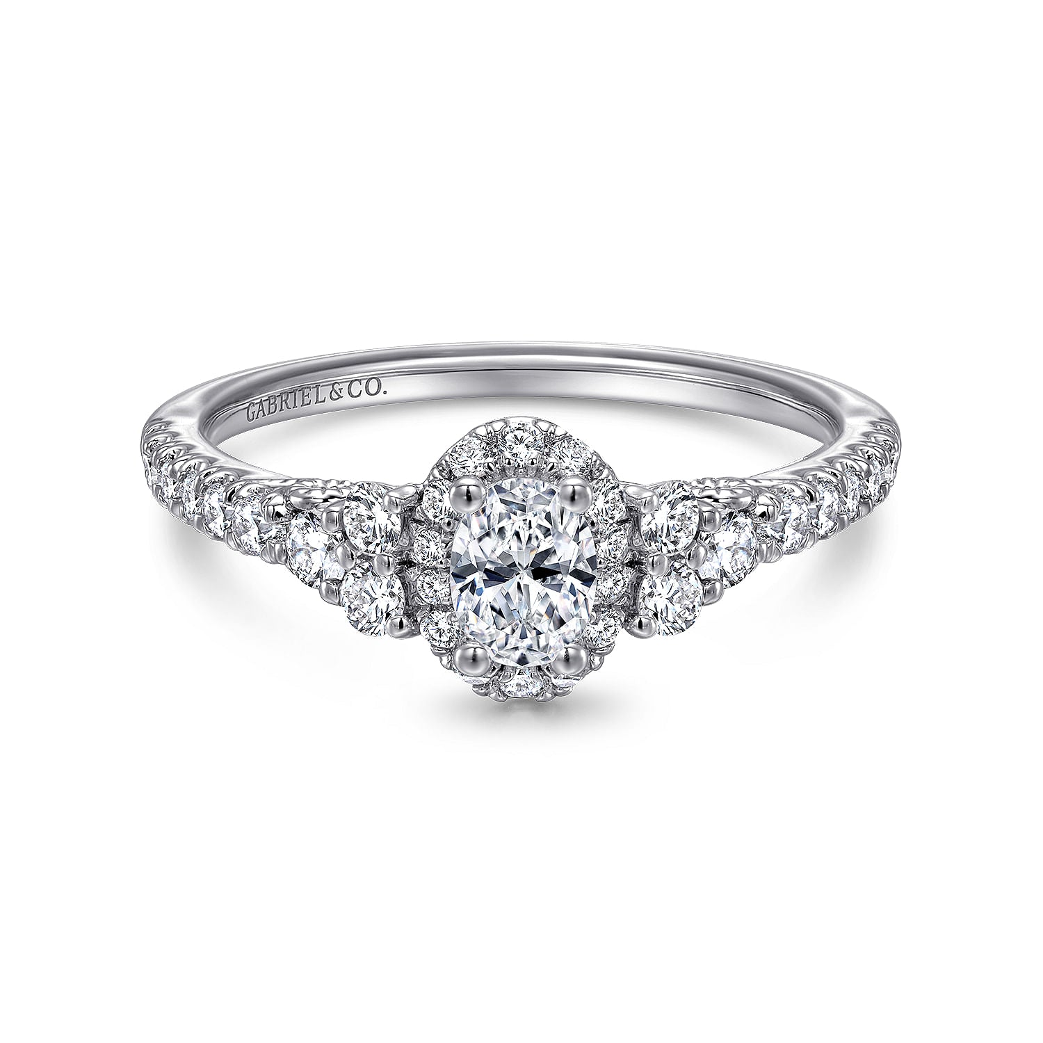 White Gold Oval Double Halo and Pave Complete Diamond Engagement Ring